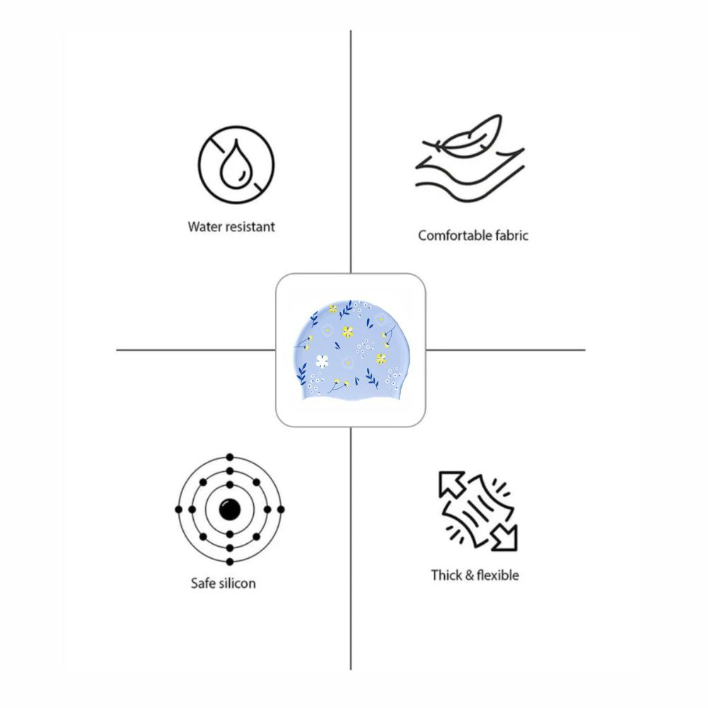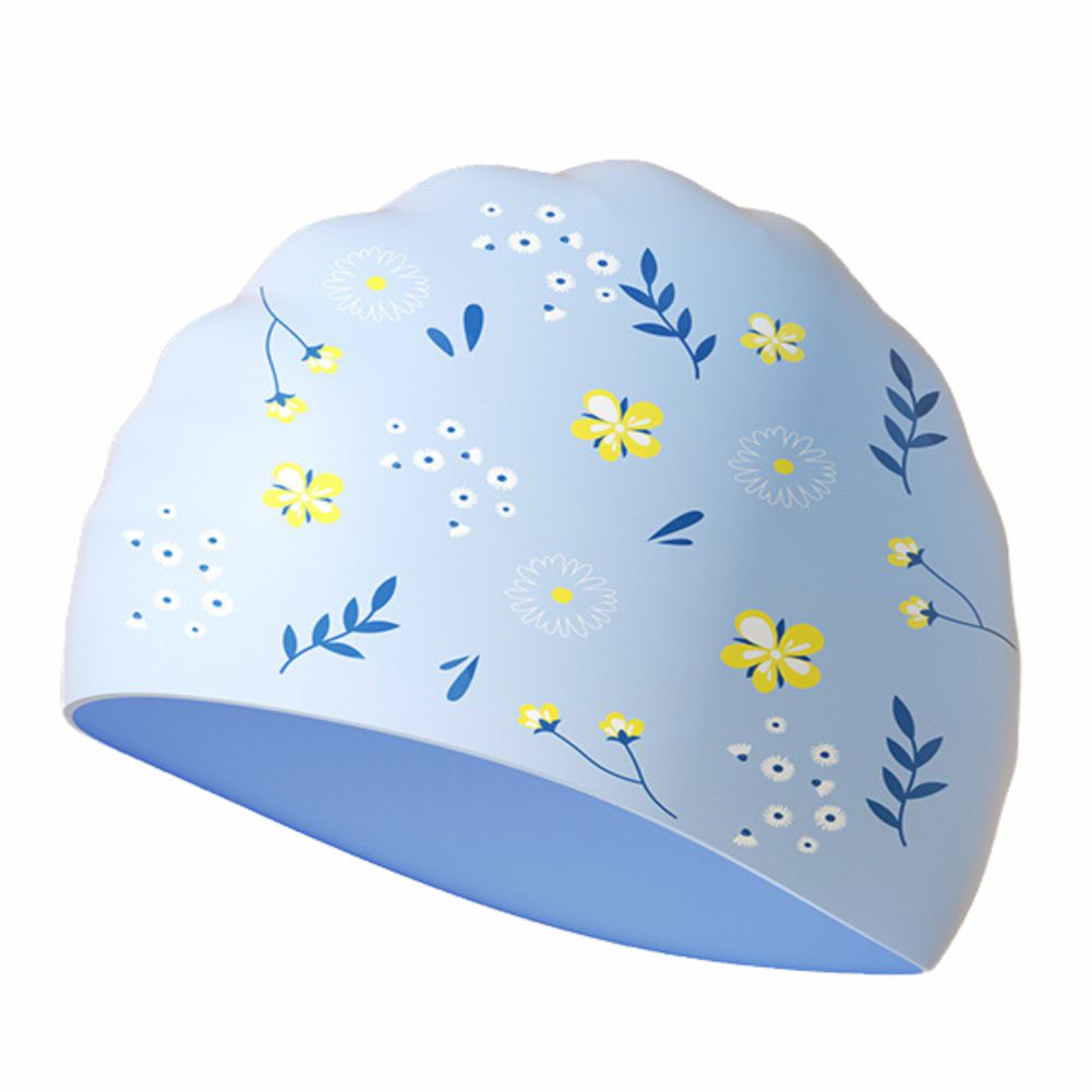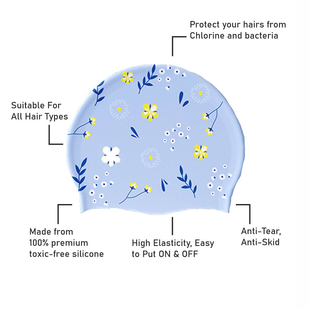Blue Small Flower Print Swimming Cap for Kids and Adults, 10 years and above.