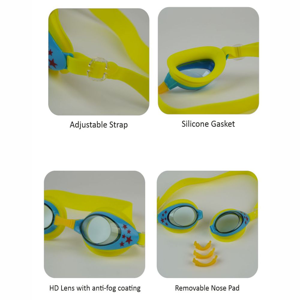 Starry Yellow Anti Fog UV Protection Leakproof Design Swim Goggles for Kids, 3yrs-8yrs