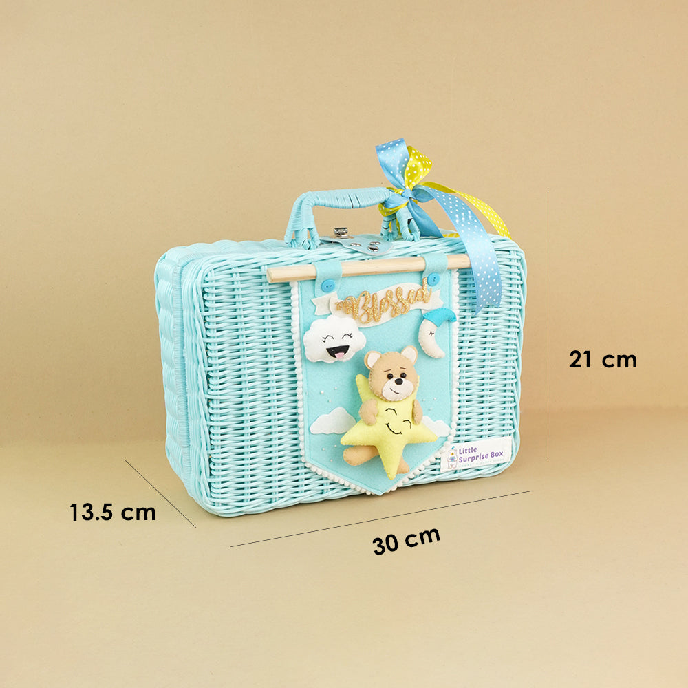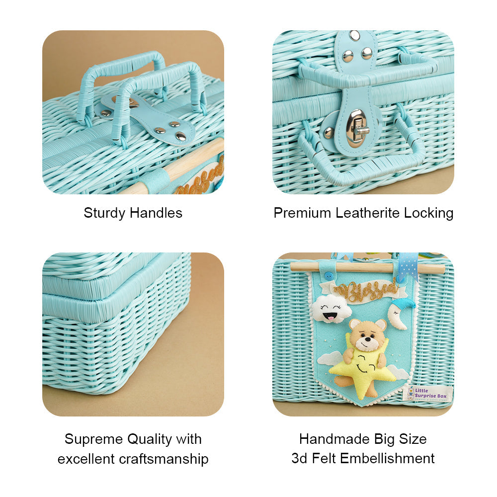 Twinkle Star Lullaby Teddy, Baby Blue Cane Basket for Storage and Travel