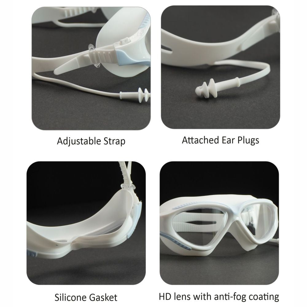• Anti Fog Advanced Technology: Enjoy crystal clear vision underwater with our advanced Anti Fog coating with a specialised wide Lens giving an uninterrupted experience of swimming under water.