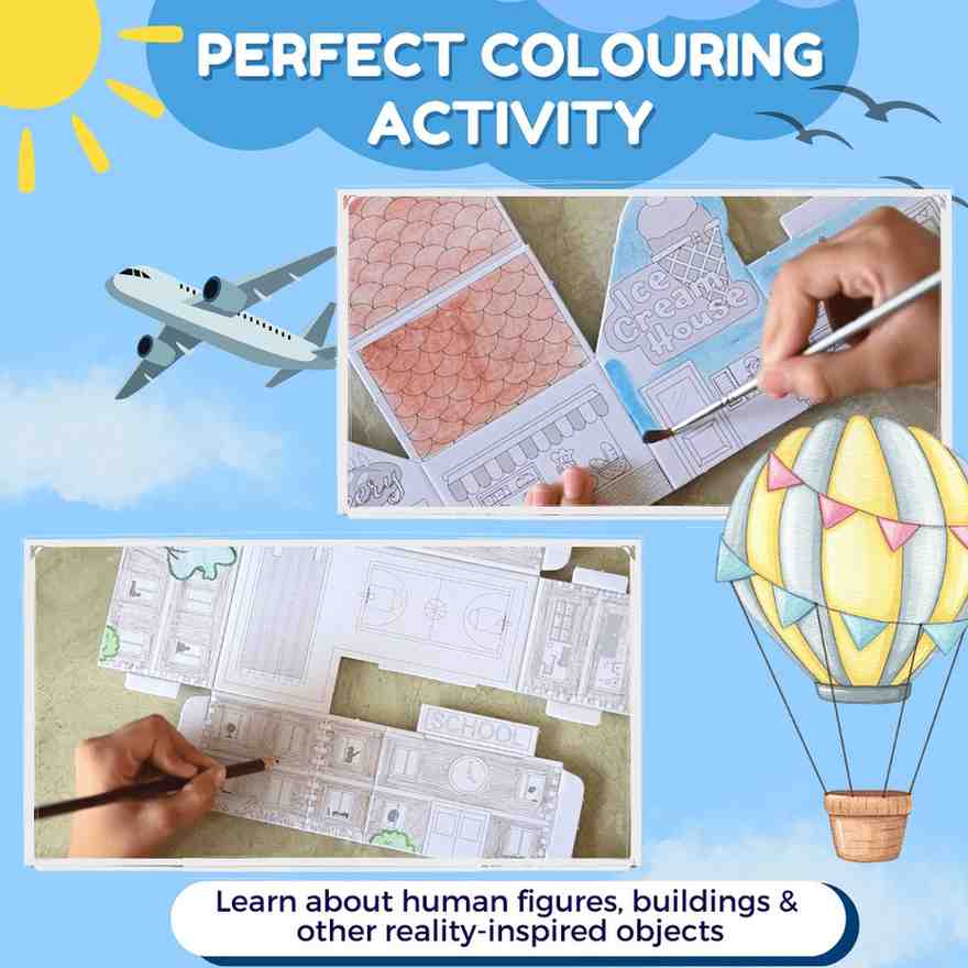 PePlay 3D Paper Model Kit: City Life is a perfect STEM activity set for growing minds. With 15 self-fitted cutout paper templates, children can fold, build, color, and play with a small town in no time. This kit contains the model of a modern city where the doodles on each building are designed carefully. Kids can use any sketch pens/crayons/pencil colors on these models to add their touch to reality. Easy to fold, No-Glue activity set.
