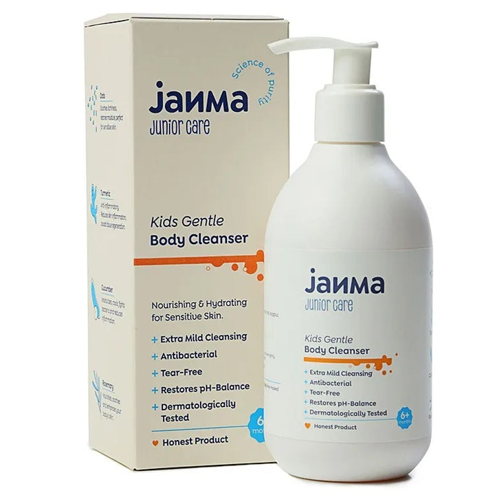Meet Kids Genle Body Cleanser - your secret to turning bath time into a blissful, tear-free adventure. Crafted with calming cucumber extract and soothing rosemary, it wraps your little one's skin in a blanket of nourishing care. No harsh chemicals, just pure, bubble joy for soft, happy skin. Moms and dads, let the giggles begin- gentle care has never felt this good!