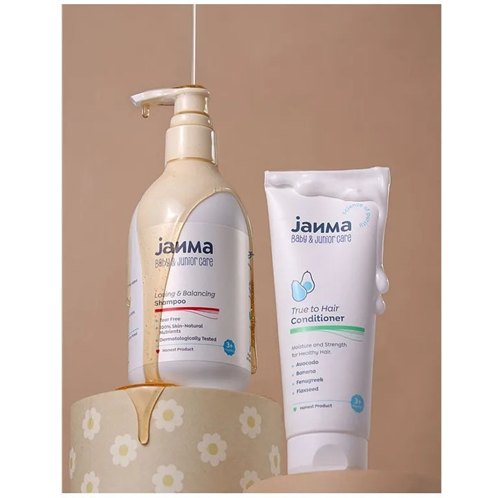 Our Loving & Balancing Shampoo is like a splashof sunshine for your little one's hair. Tear-free, cloud-soft, and balanced just right. It's the cuddle in a bottle that turns bath time into giggle-time, keeping their hair as playful as they are! Gentle magic for your mini adventurer.