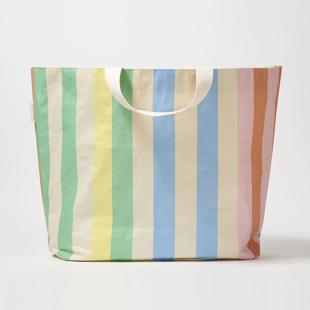 Live your life in the sun with Sunny Life. Get summer ready with the Sunny Life Carryall Bag, made to fit all your beach and pool essentials. Available in a classic stripes print and made up of a sturdy material, this bag will keep its shape whether full or empty. Equipped with cotton webbing handles, detachable zipped pouch and drainage holes at the base for sand or water, the bag is so well designed that you are sure to make it one of your essentials this summer. It is also easy to fold thereby facilitating easy storage once used. Lightweight, durable and waterproof - it's the ultimate beach and outdoor bag!