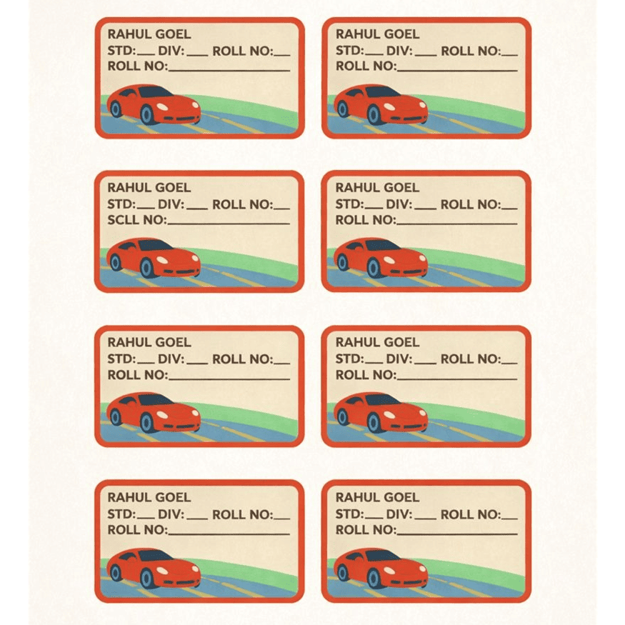 These cute and waterproof School Book Labels in a Sports Car theme will brighten your child’s school journey. Designed to make book labeling fun and easy, these vibrant car-themed labels help kids identify their books instantly. Multiple print options are available to choose from.