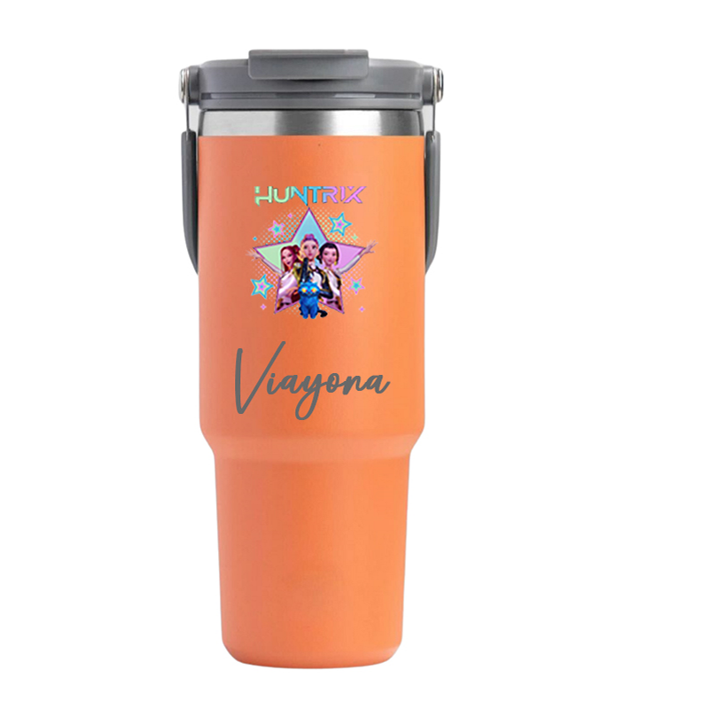 Our tumbler is the perfect sipper to keep your drinks hot and cold all day long as it is double wall insulated! It comes with a comfortable grip handle. The handle makes it perfect for carrying on the go and can easily fit in a cup holder. The built-in flip cap is made for easy-breezy sipping. Take it to the gym, school or work. It keeps water cold for 4 hours, hot for 1.5 hours. Select from fun designs & add your name for a personal touch (Design is optional)