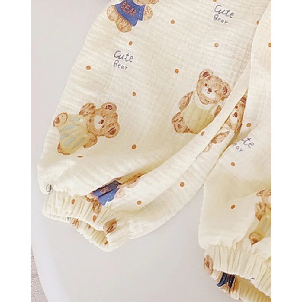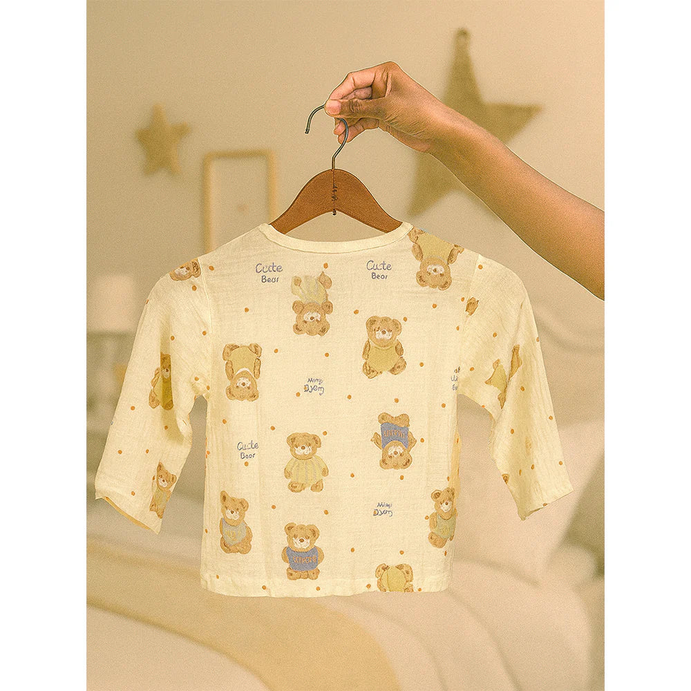 Mustard and Blue Ted, Organic Crushed soft Muslin Cotton Kids Nightsuit