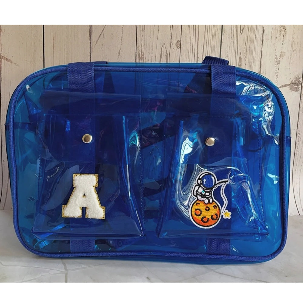 The Double pocket Jelly Bag is a vibrant and trendy accessory for kids who love a pop of color. This transparent bag features 3D patches on the front, making it a stylish statement piece. It comes with one spacious main compartment and additional 2 pockets offering plenty of space for all essentials.  Perfect for school, day trips, or everyday use, this backpack combines style, function, and personalization.