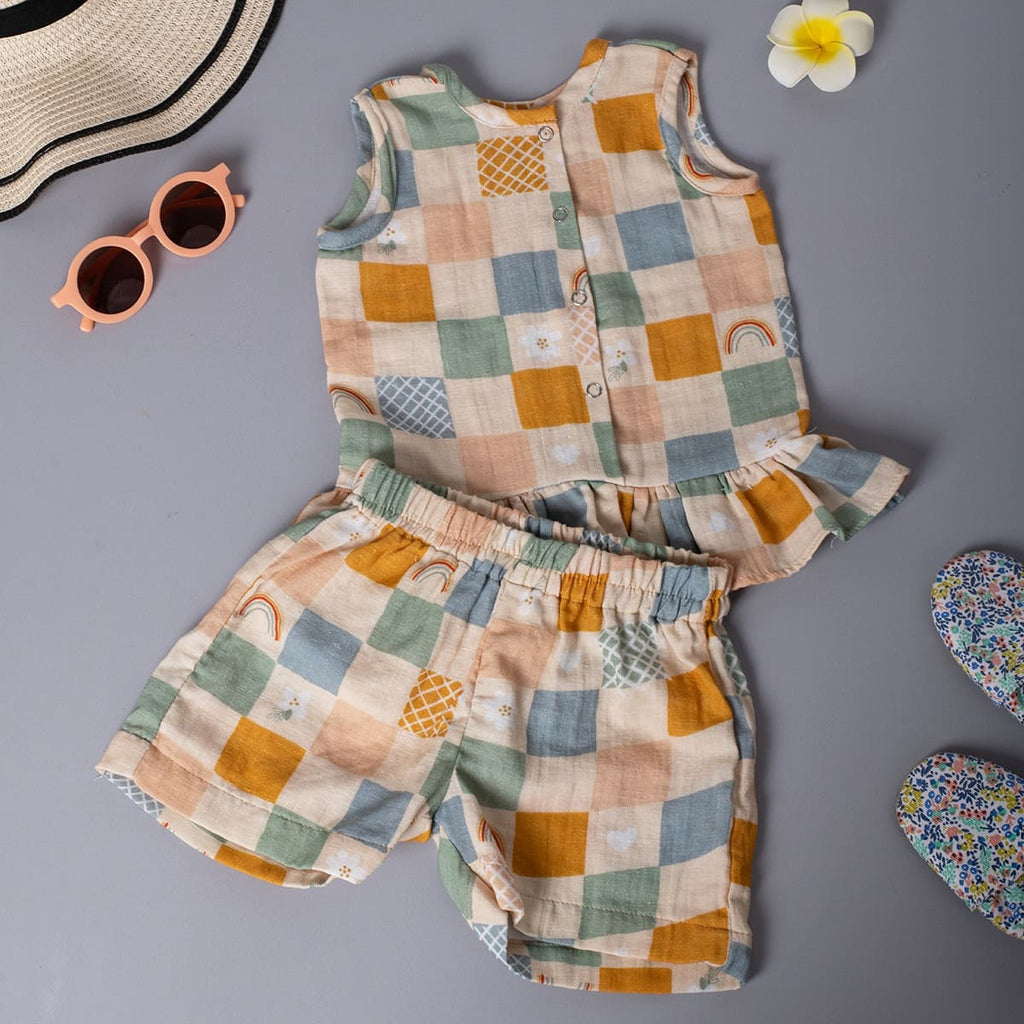 Made from ultra soft Cotton Muslin fabric, these co-ord sets are super lightweight & comfortable. They are breathable & gentle on their soft skin. Designed for all-day comfort, these co-ord sets are stylish and elegant.