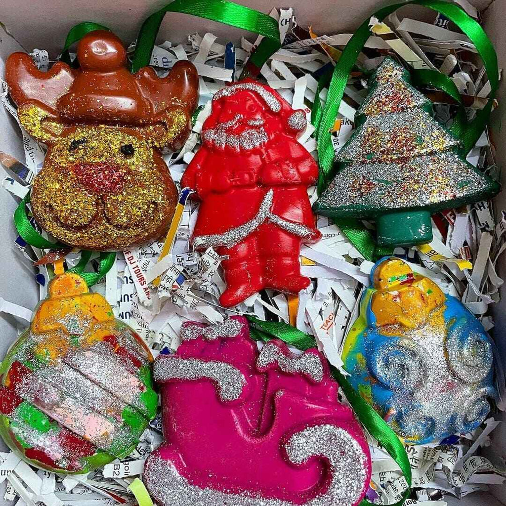Celebrate the holiday season with the Handmade Jumbo Christmas Ornament Shaped Crayons Set of 6. These beautifully crafted crayons come in vibrant Christmas-themed shapes, making them perfect for Christmas party favors, holiday crafts, or as unique Christmas return gifts for children. They’re designed to be both fun and functional, offering kids a creative way to engage with the magic of Christmas.