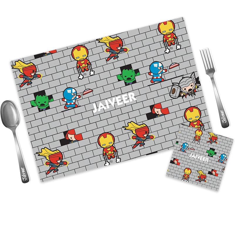 Make mealtime magical with our adorable and fun personalized dinner mat sets combo for kids! The Placemat can be cleaned with a damp cloth.