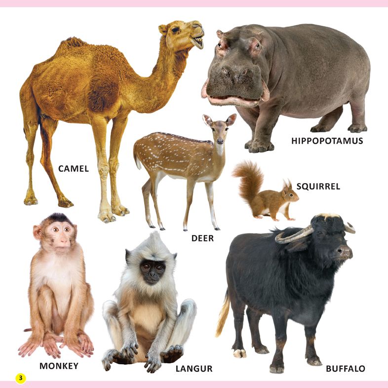 From the cat, dog, elephant to mouse, giraffe, panda, and from hen, parrot, sparrow to dove, flamingo, goose, and many more, this book highlights ample words each clearly labelled with pictures of animals and birds. This makes it easy for kids to memorise and identify the names of animals and birds. This book is indeed an important resource for developing language for early learners.