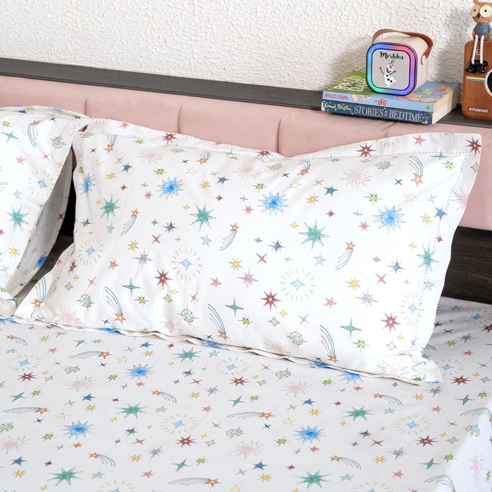 Get your little one's bedroom ready with our 100% cotton bed sheet, featuring captivating hand-illustrated prints for comfort, durability, and endless charm.