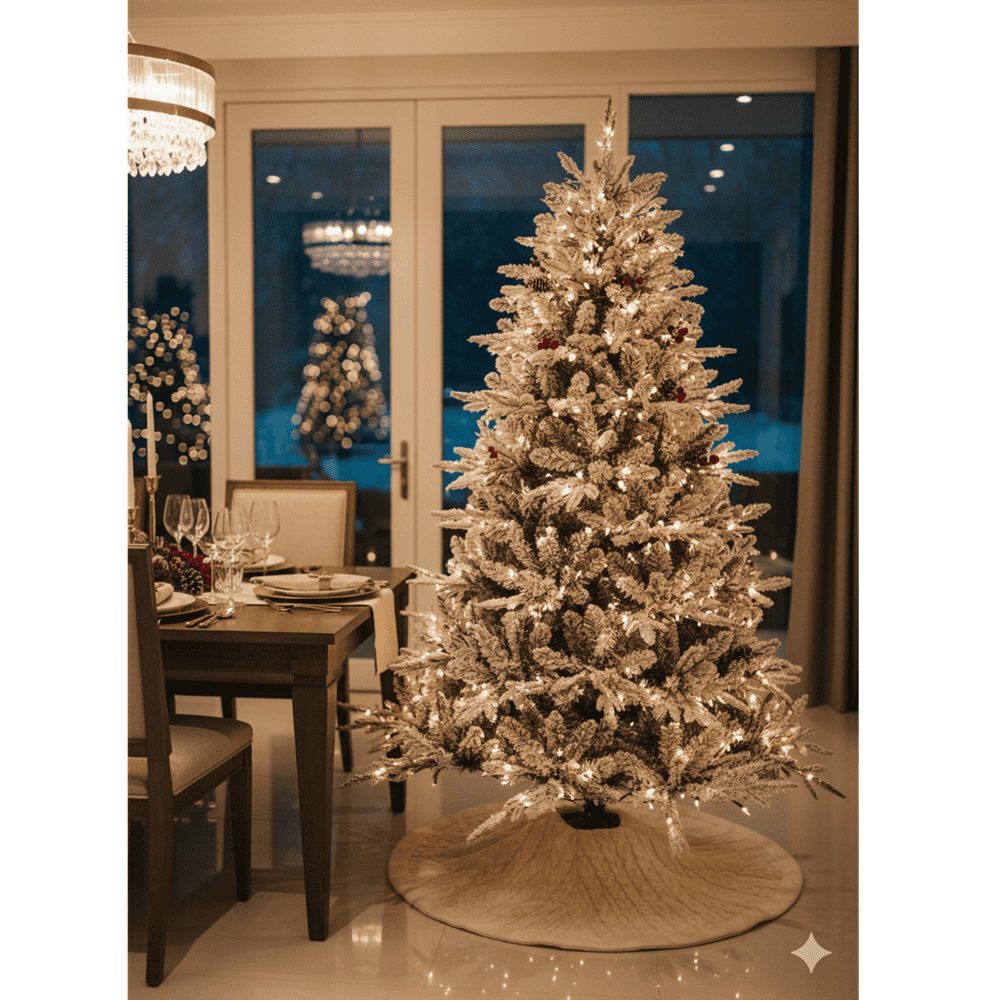 Cast a spell and transform your living space into a magical, snow-covered forest with the Niva christmas tree by Swen. Standing at a classic 6-foot height, this magnificent tree comes fully pre-decorated with charming, rustic accents, delivering a complete, show-stopping holiday display with minimal effort. The branches are thoughtfully adorned with clusters of natural pinecones and vibrant red holly berries, providing a beautiful, complete look right out of the box. Niva features a delicate, yet ample light flocking across the green tips, beautifully mimicking the soft look of a freshly snow-dusted evergreen.