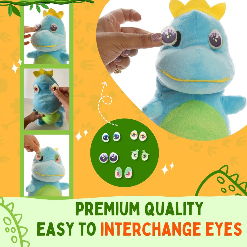 Unlock prehistoric adventures with our no-sew, no-glue DIY dinosaur kit! This easy three-step activity lets children fill the dinosaur with super soft stuffing, tie colorful ribbons for the tail, and customize its expressions with changeable eyes to learn about emotions.