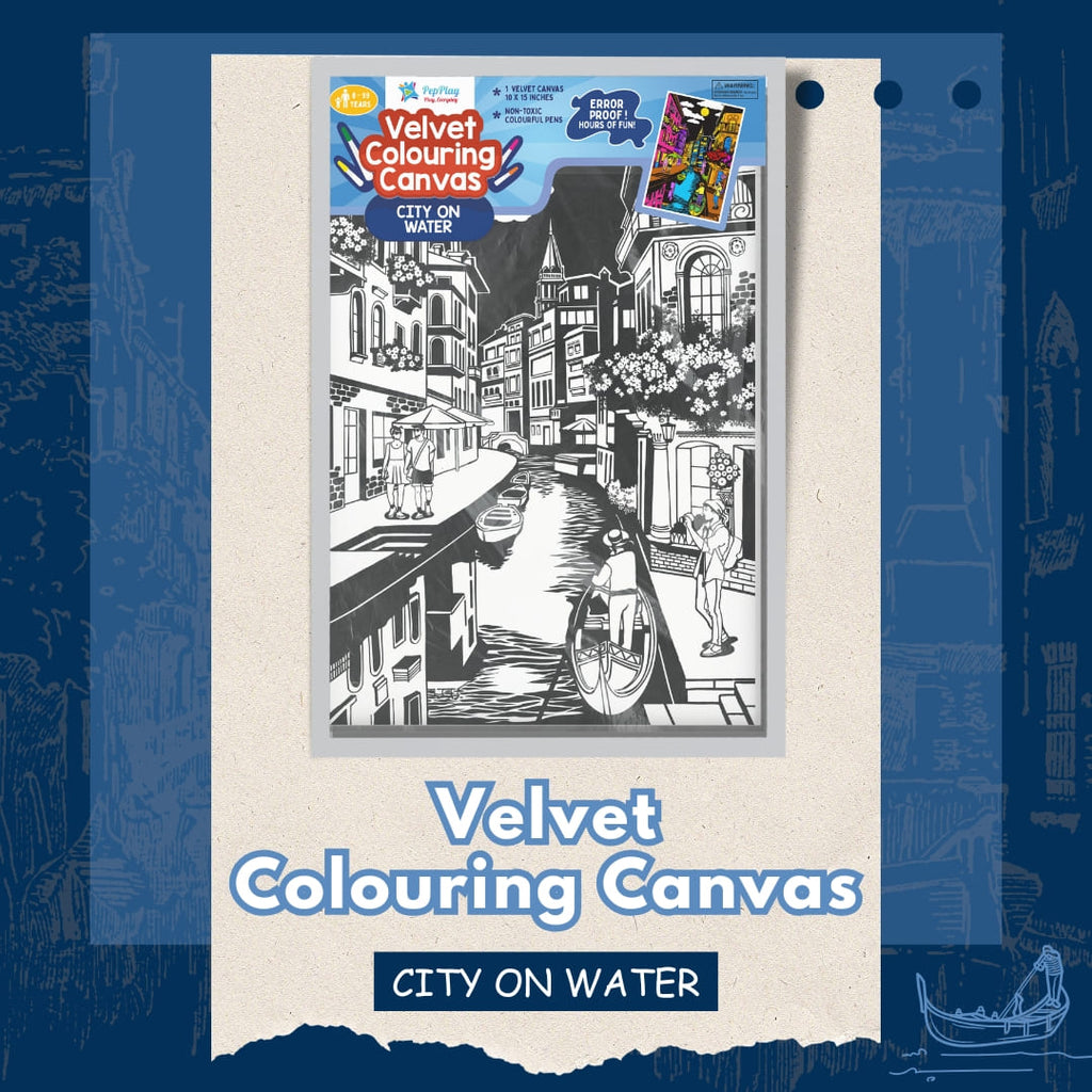 The PepPlay Velvet Colouring Canvas with “City on Water” theme offers a unique and sensory colouring experience for both kids and adults. With enchanting scenes of Venice riverside markets, bustling bridges, and charming waterfronts on premium velvet canvas, it’s not just an artistic activity but also a tactile and meditative one.
