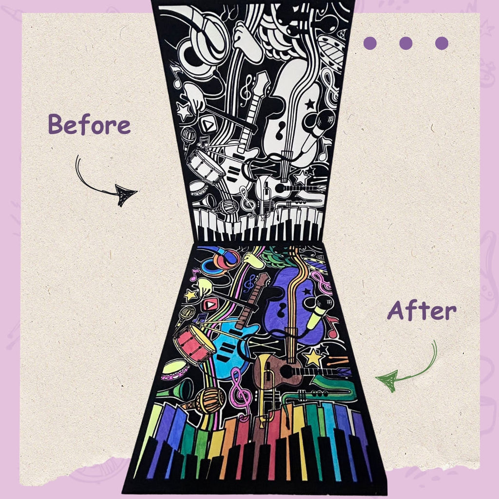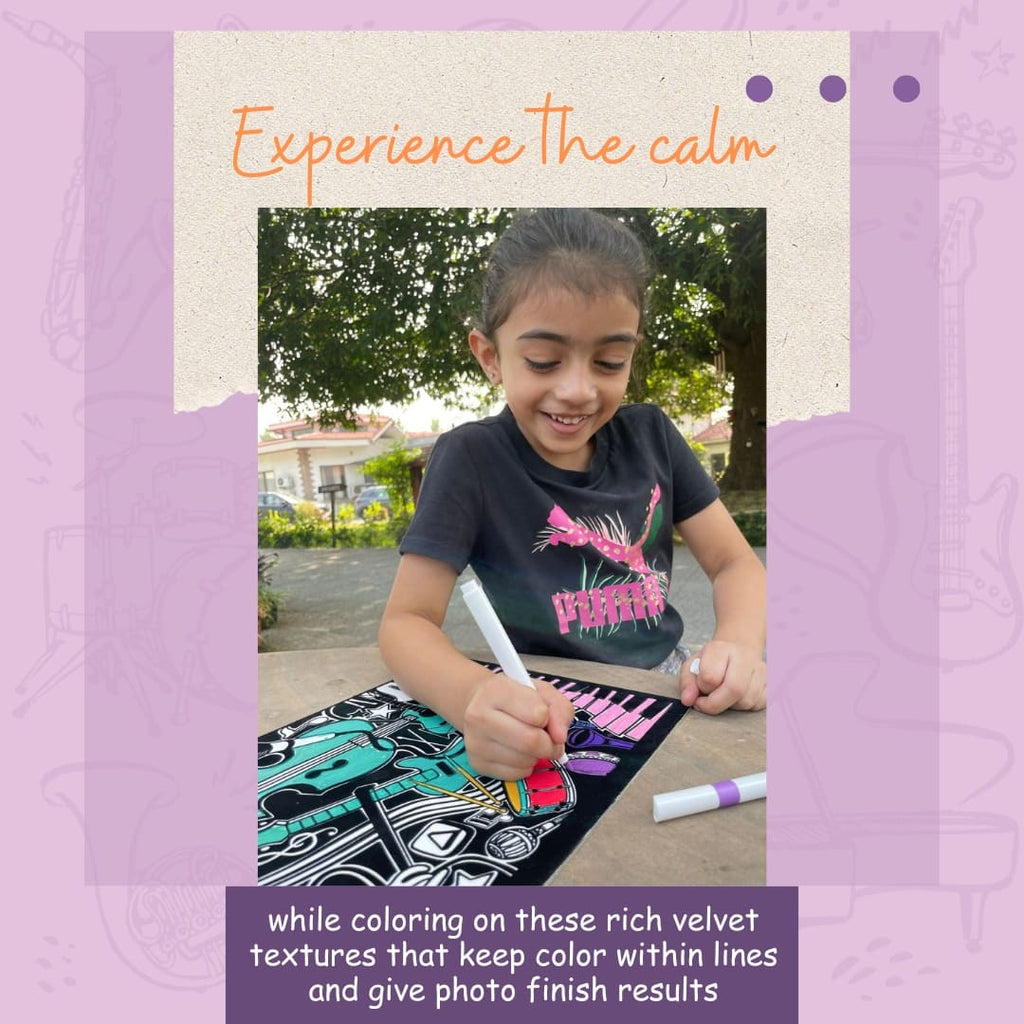 The PepPlay Velvet Colouring Canvas with “Melodies of Music” theme offers a unique and sensory colouring experience for both kids and adults. This unique velvet canvas features a harmonious medley of musical instruments, from pianos and guitars to violins and trumpets, intricately arranged in a captivating collage, it’s not just an artistic activity but also a tactile and meditative one.