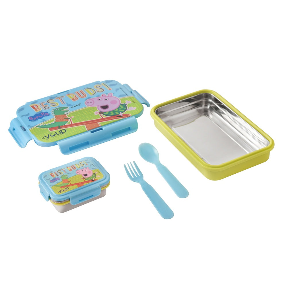Youp Stainless Steel Blue and Yellow Color Peppa Pig Kids Lunch Box Euro - 450 ml