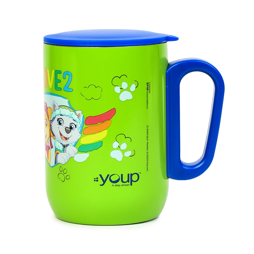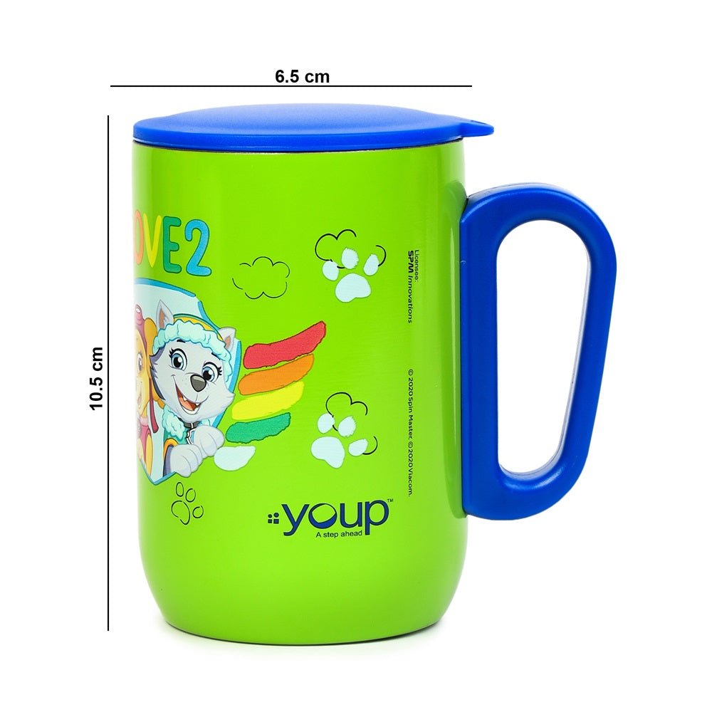 Youp Stainless Steel Green Color Paw Patrol Love2Laugh kids Insulated Mug with cap - 320 ml
