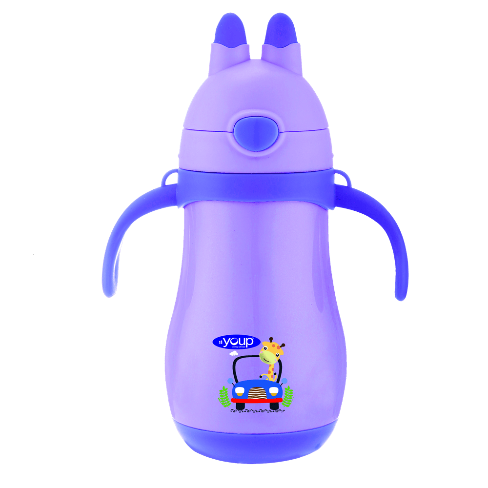 Youp Stainless Steel Purple Color Kids Sipper Bottle with Handle Wiggly - 350 ml