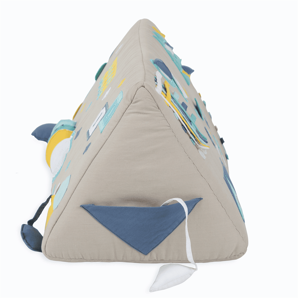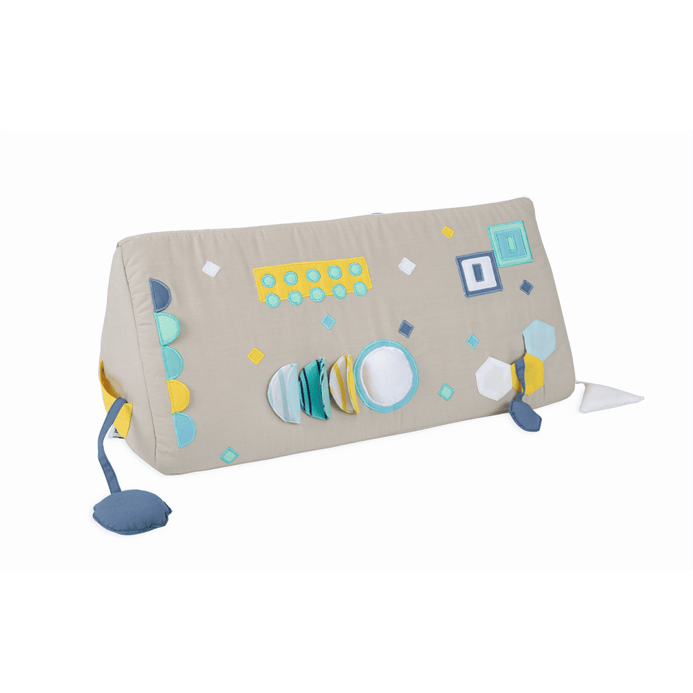 Our Neo Geometric Tummy Time Toy is full of ways to stimulate your little one's senses and imagination. With a squeaker, crinkle paper, mirror, and rattle, it encourages hands-on play. Plus, the joyful decorative shapes come in gender-neutral colors to complement any nursery. The tummy time wedge is filled with new 100% polyester foam and with hypoallergenic polyester fiber wadding. Suitable from birth. Made in India.