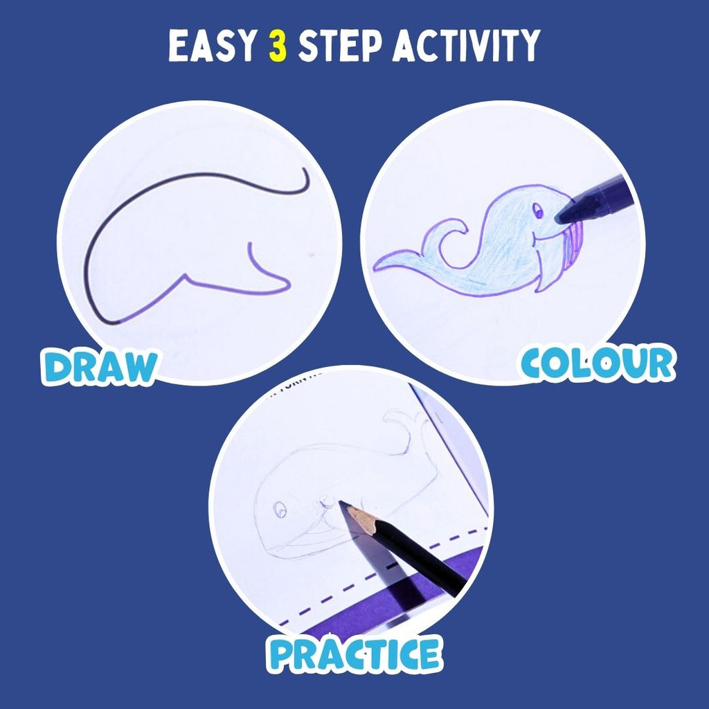 This fun, educational & instructional drawing book opens with a quick look at the materials that the young artists need to get started, as well as warm-up drawing exercises and art tips.
