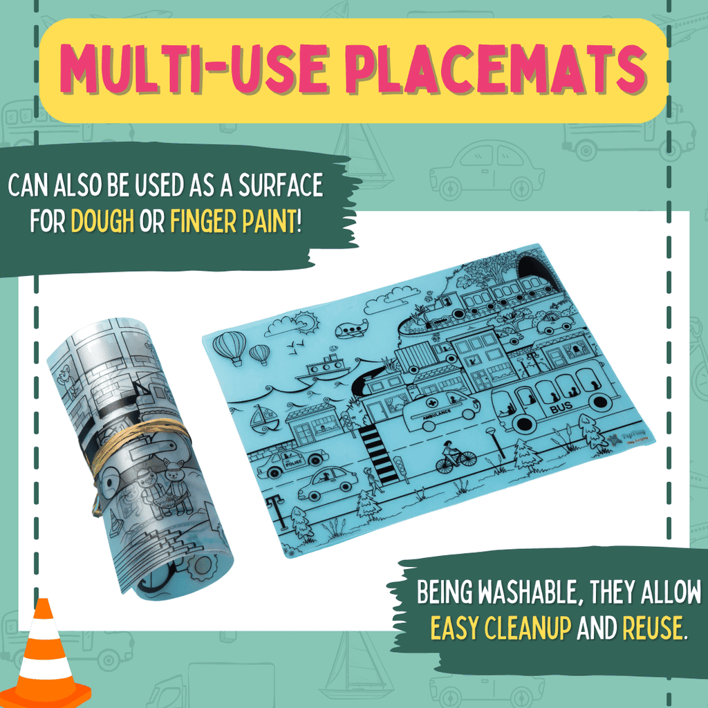 Make mealtime fun with Doodle Placemats - Vehicle Series! Reusable, easy-to-clean, and perfect for little artists who love cars, trucks, and more.