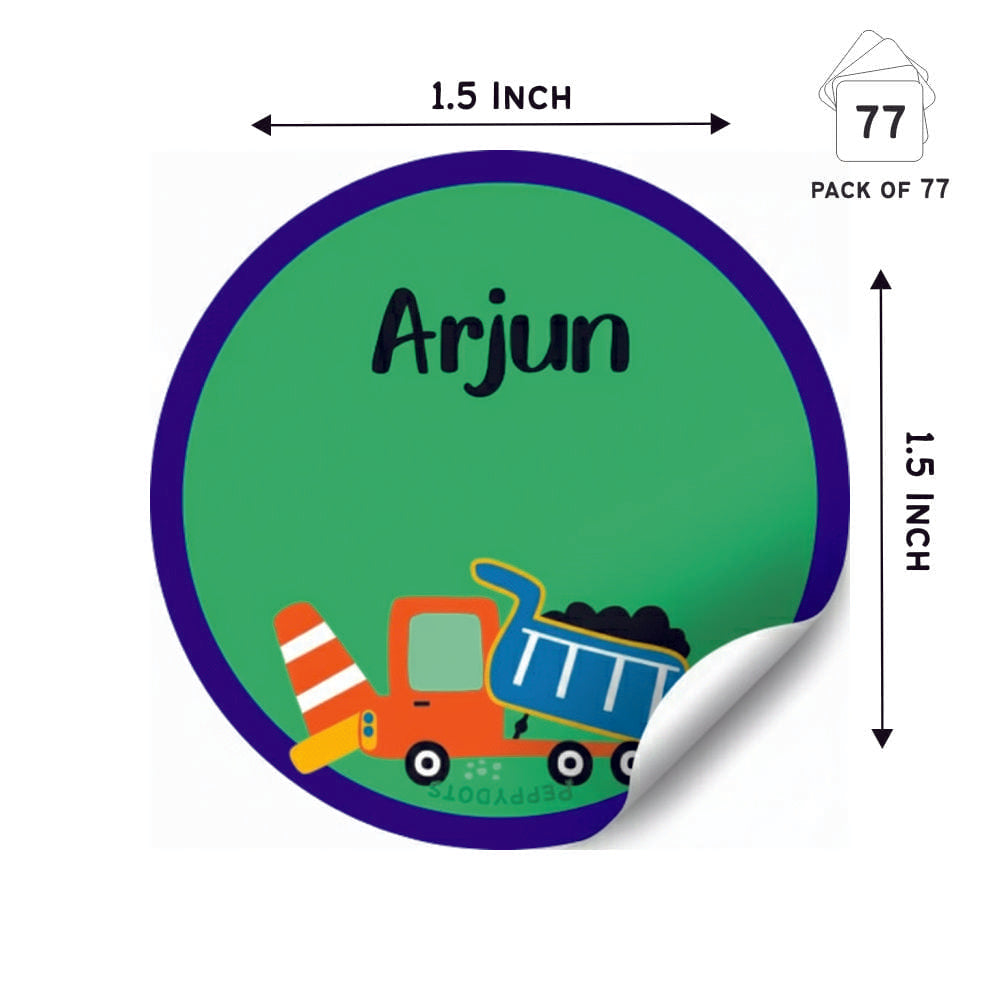 Round Water Proof Labels -Construction vehicles