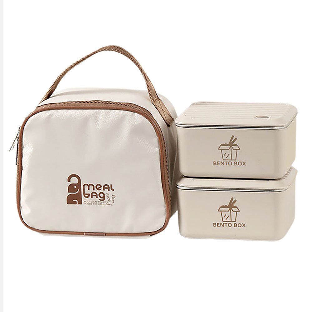 Cream 2pcs Bento Stainless Steel Lunch Box Container set with Lunch Bag
