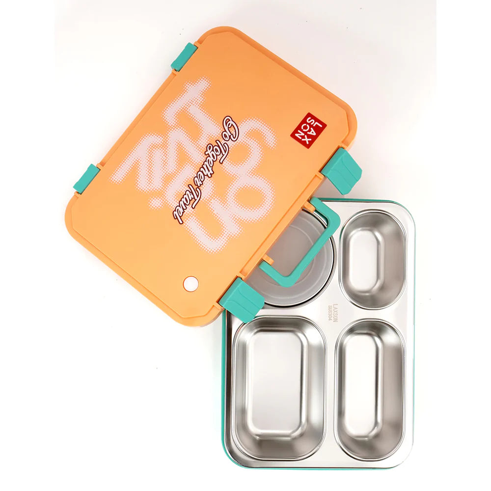 - Four Compartments: This is a good sized 4 section Lunch Box. Hence it becomes easier to carry different kinds of food placed in different compartment. It ensures that the food does not travel to another compartment.