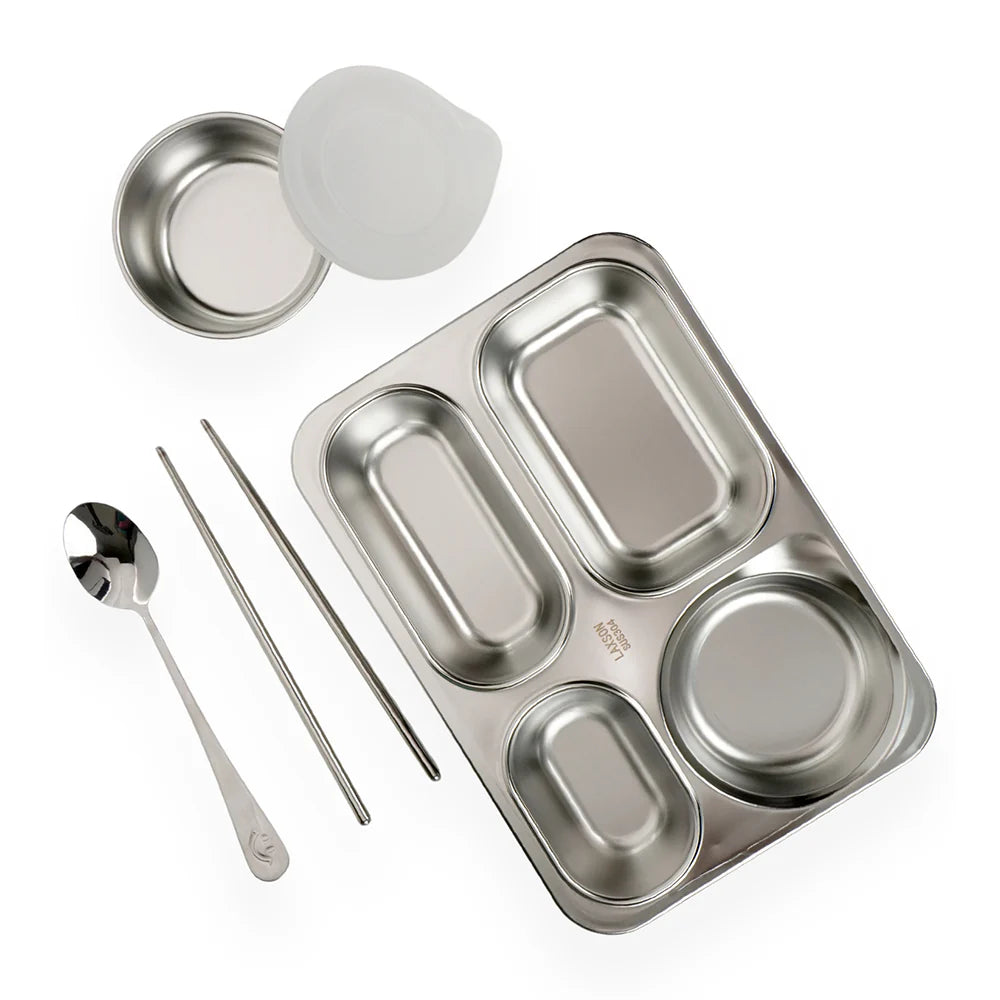 - Dip Container, stainless steel Spoon and stainless steel Chopsticks : This comes along with a dip container and a pair of stainless steel chopsticks and a spoon which easily fits in the tray of the tiffin.