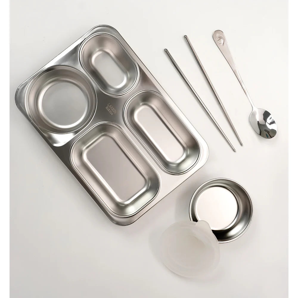 • Dip Container, stainless steel Spoon and stainless steel Chopsticks : This comes along with a dip container and a pair of stainless steel chopsticks and a spoon which easily fits in the tray of the tiffin.
