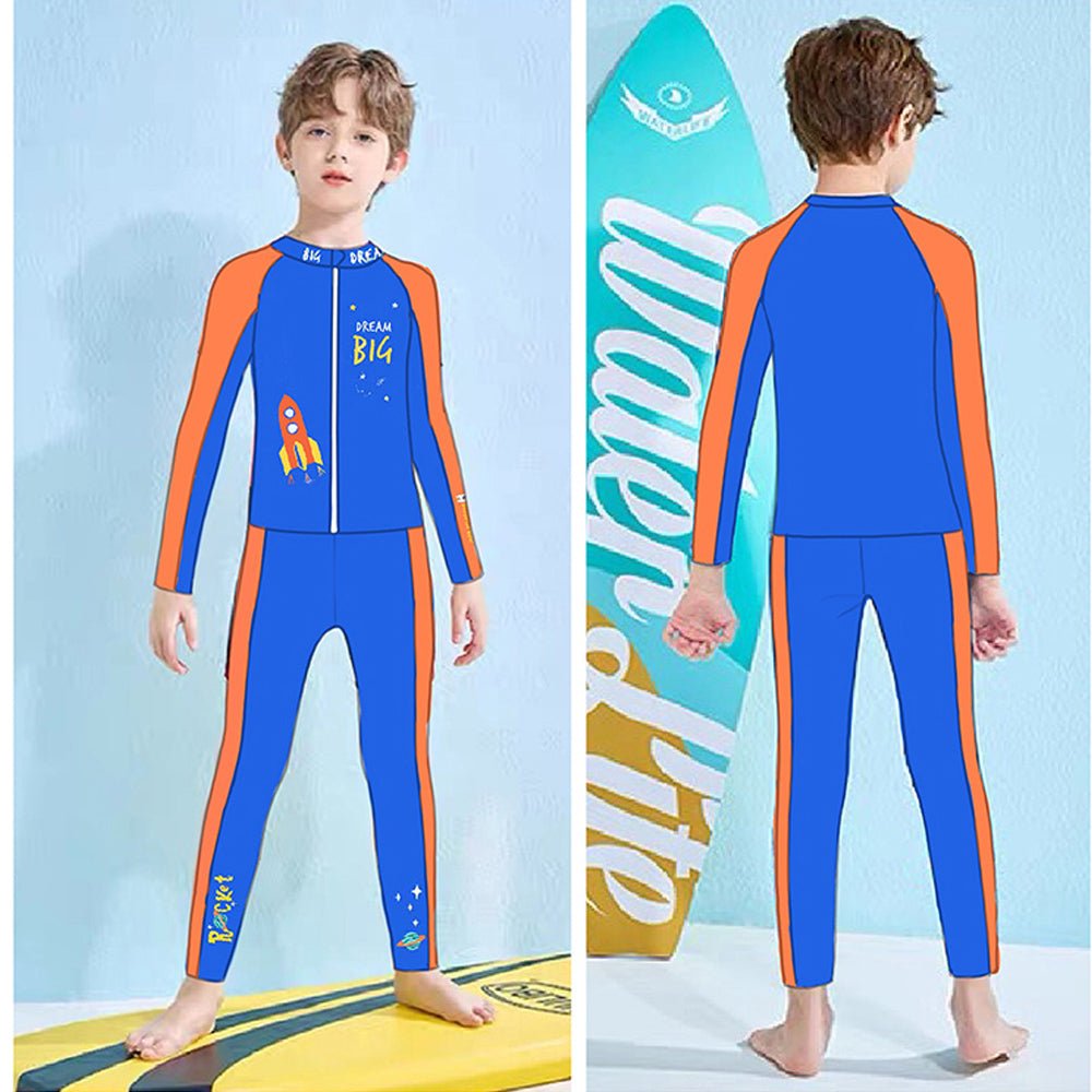2 pcs Shirt & Pants set LSB Blue & Orange Space Swimwear Full length for Kids with UPF 30+
