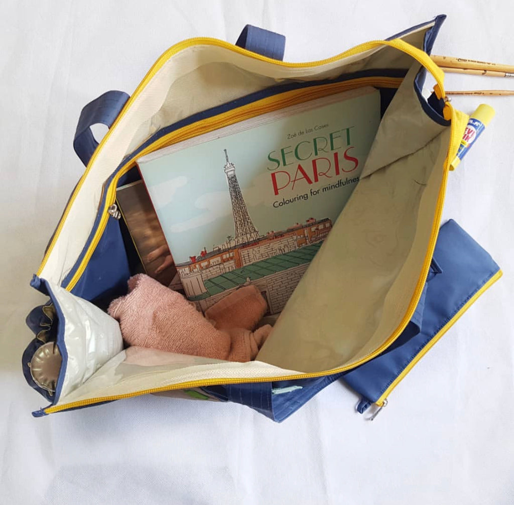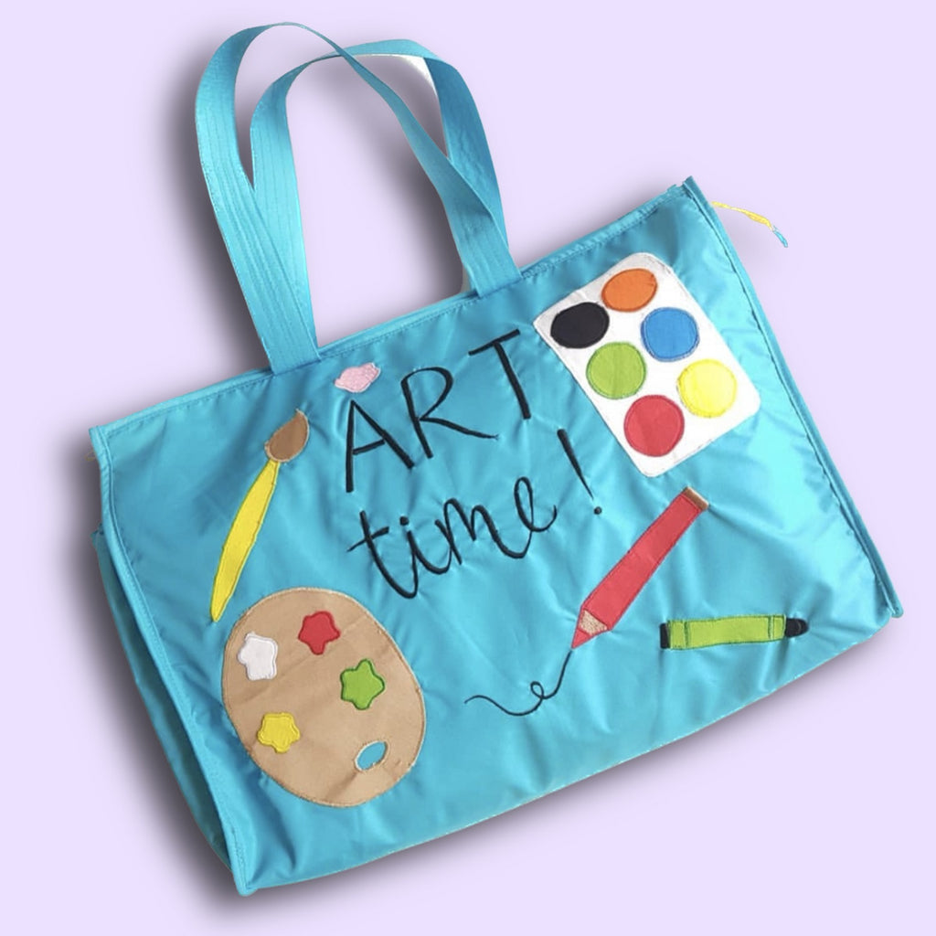 This Art bag can hold A3 size drawing book and has many partitions inside.