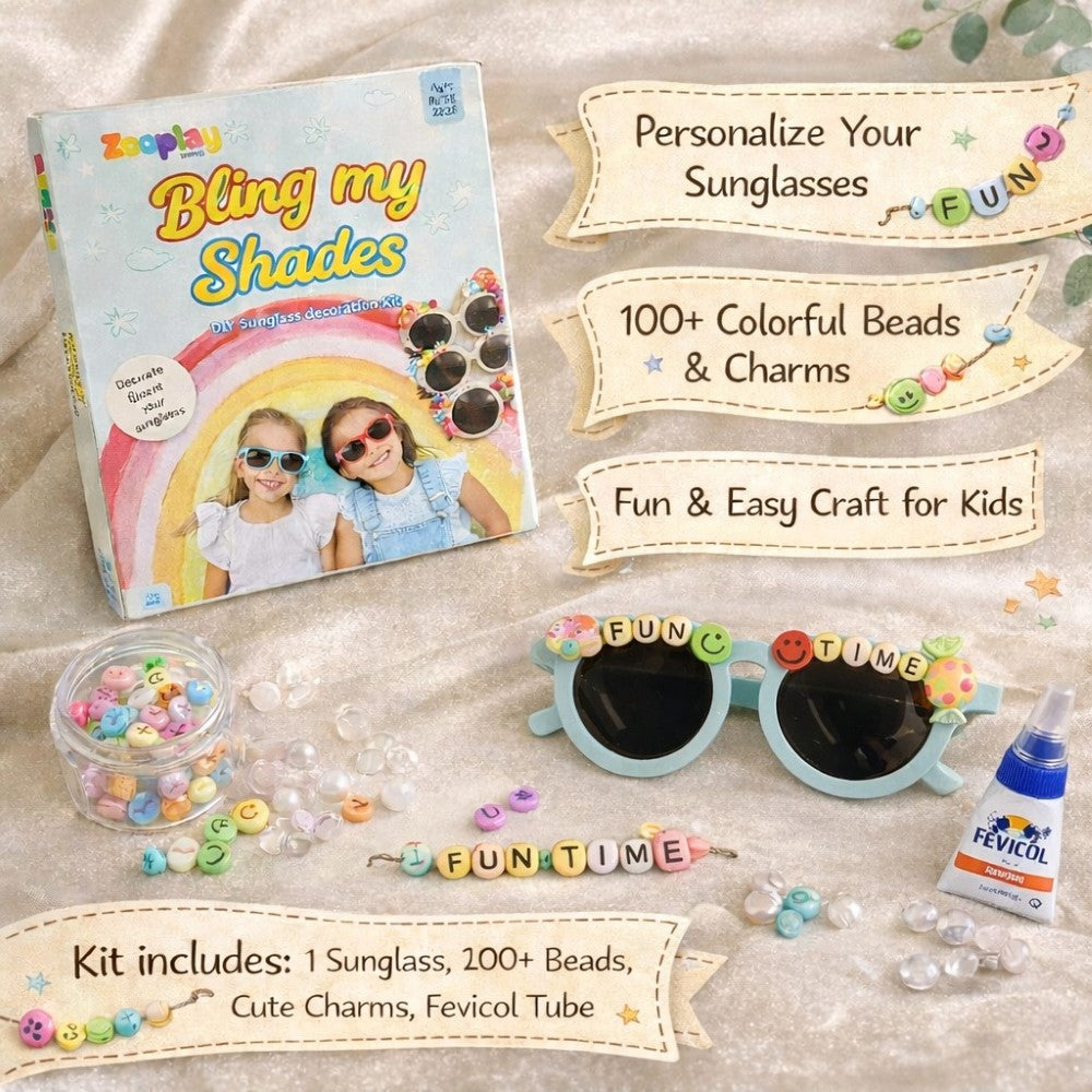 Unleash your creativity with the Bling My Shades DIY Sunglass Decoration Kit! This all-in-one kit includes everything you need to create unique, customized sunglasses that reflect your personality. Perfect for craft enthusiasts, parties, and personalized gifts, Bling My Shades lets you get ready to shine with your one-of-a-kind eyewear! This kids' sunglasses are flat and durable, made of quality AC material which is skin-friendly and not easy to break, allowing your kids to wear for a long time.