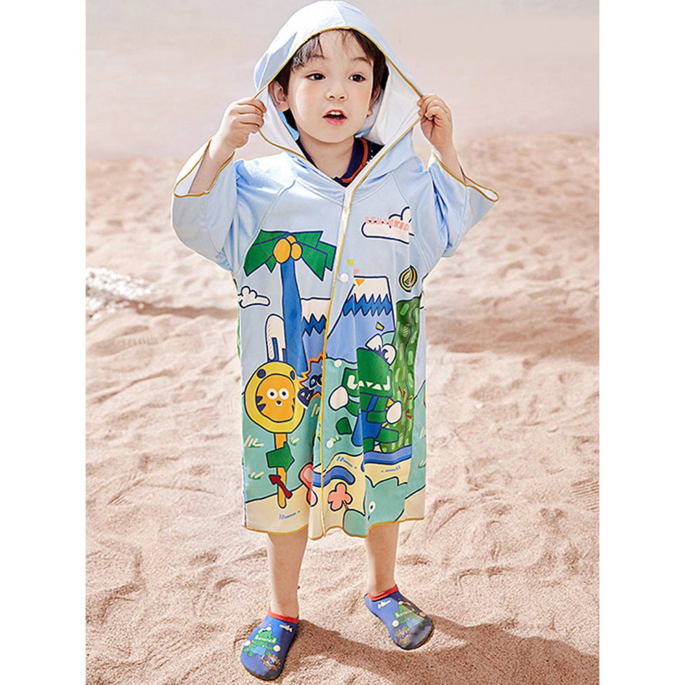 Blue Dino Lightweight Microfibre Hooded Swim Poncho/ beach coverup towel for Kids