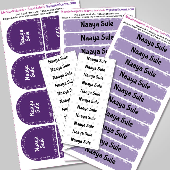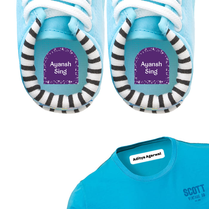 It’s a small pack of assorted labels for your few days of camping baggage needs, The Iron On Clothing Labels, Shoe Labels and minnies are all a part of this pack. It's great for starters too, who wish to try our labels.