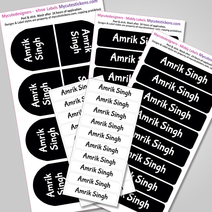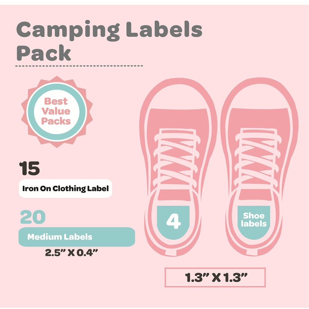 It’s a small pack of assorted labels for your few days of camping baggage needs, The Iron On Clothing Labels, Shoe Labels and minnies are all a part of this pack. It's great for starters too, who wish to try our labels.