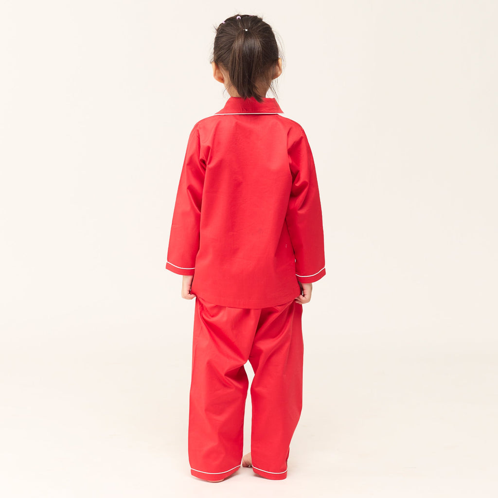Cozy up in this vibrant red holiday pajama featuring Santa decorating the tree, adding a festive touch to your bedtime look!
