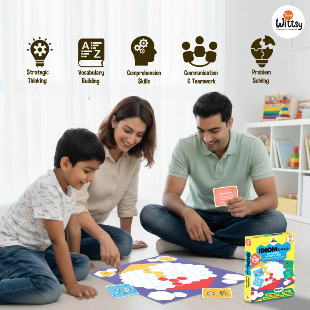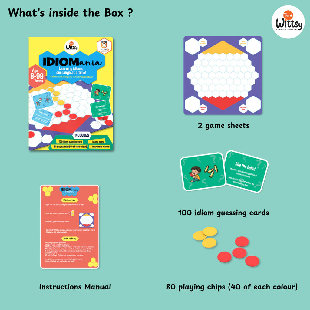 IDIOMania is the ultimate picture guessing board game for mastering English idioms! Get ready for a battle of brains and laughter as you decode clever visual clues to guess hidden idioms before your opponent. This game blends quick thinking, teamwork, and strategy to make language learning fun and competitive. It's the perfect mix of education and entertainment for game nights, families, or classrooms!