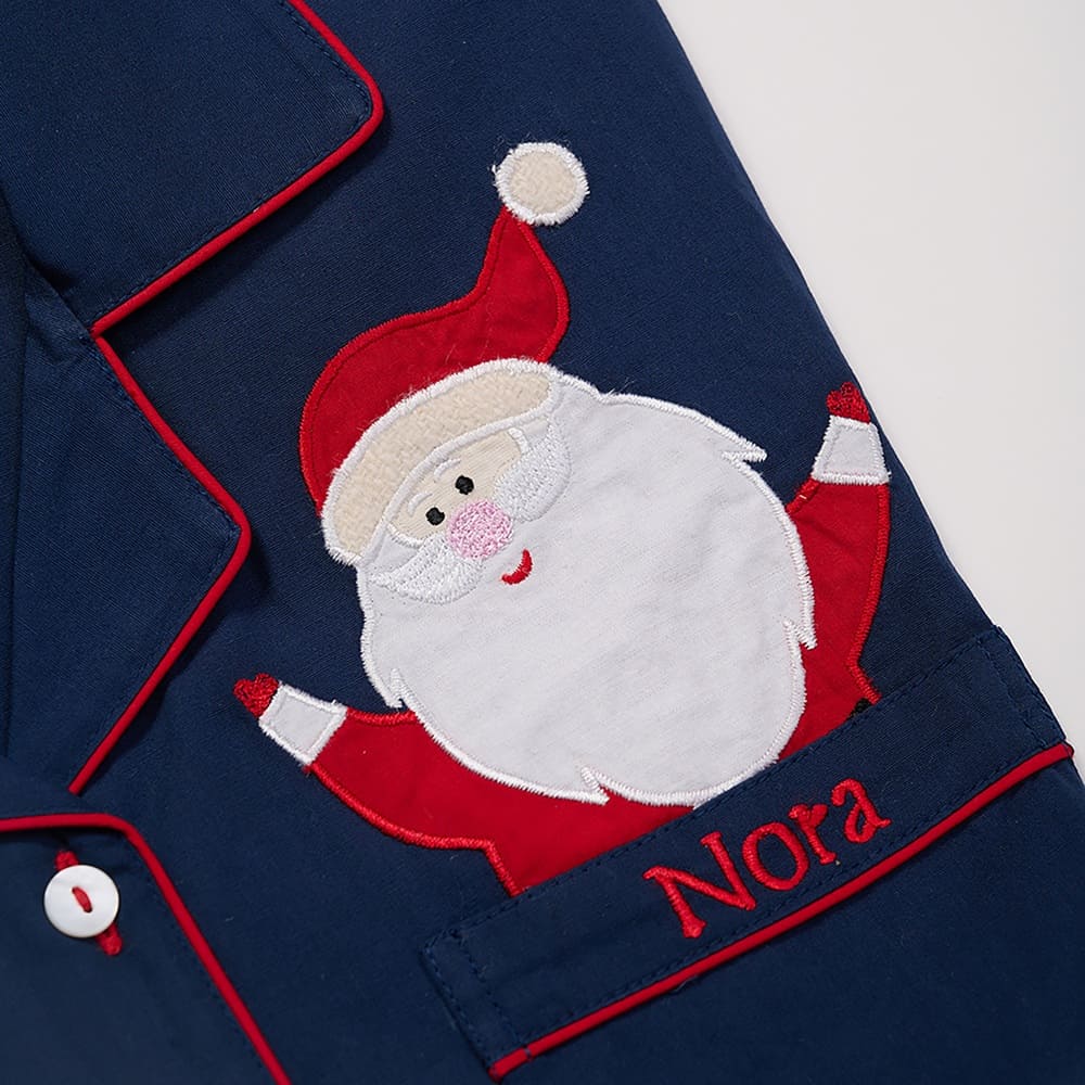 Adorable embroidered Santa on this beautiful & luxuriously soft navy cotton is perfect this festive season!