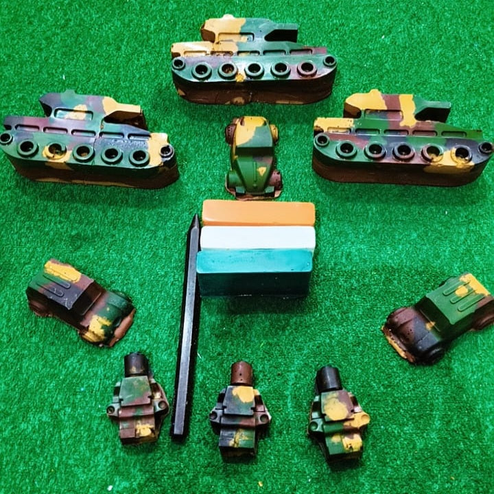 Handcrafted in India using BIS-certified, non-toxic crayon and wax, each piece is completely child-safe and designed with an easy-to-hold shape suitable for small hands. From tanks and jeeps to soldier figures and tricolour-inspired crayons, this set encourages imaginative play, fine motor development, hand-eye coordination, and creative expression.