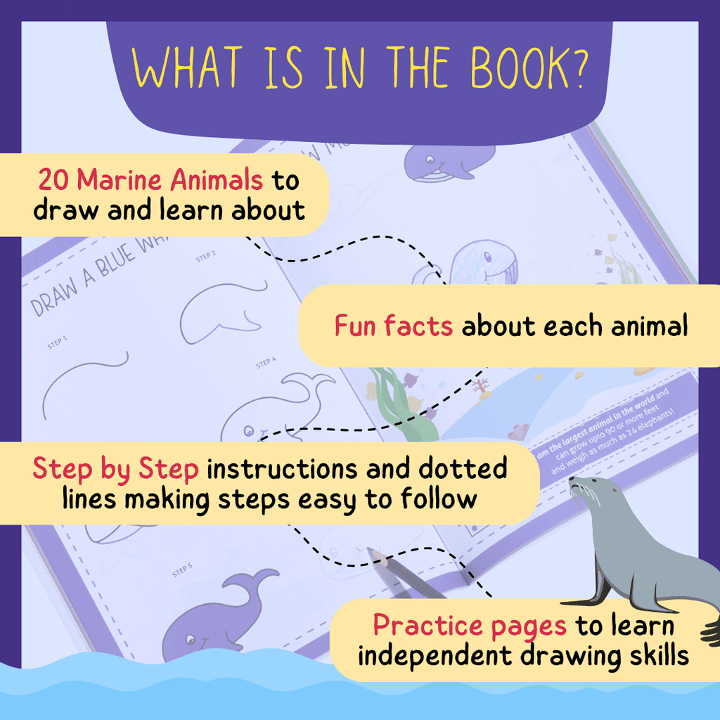 • Each book contains 20 mystical marine life to draw & learn about