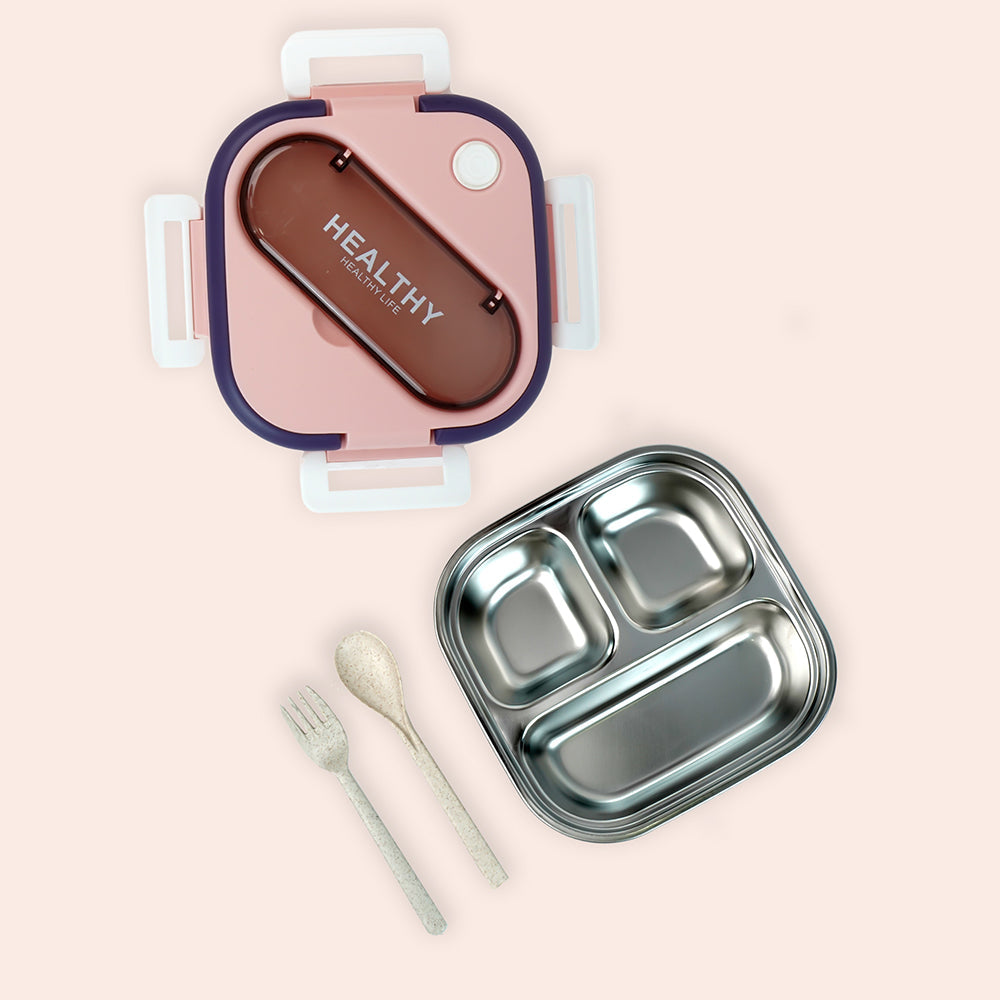 Three Compartments: This Is A 3 Section Lunch Box. Hence It Becomes Easier To Carry Different Kinds Of Food Placed In Different Compartments. It Ensures That The Food Does Not Travel To Another Compartment.