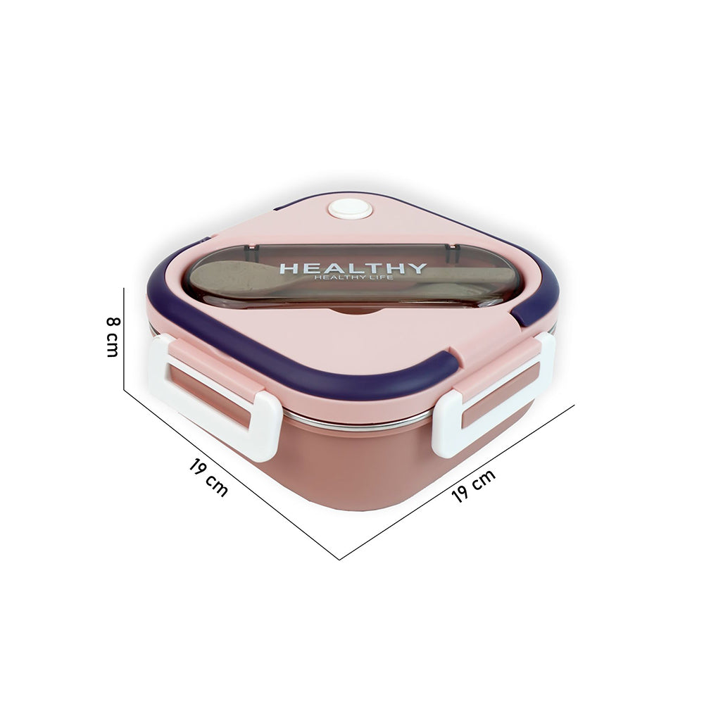 Compact Design: This Compact Style Rounded Square Lunch Box Comes In A Playful Tones Bringing In Some Freshness In The Boring Lunch Box Designs.