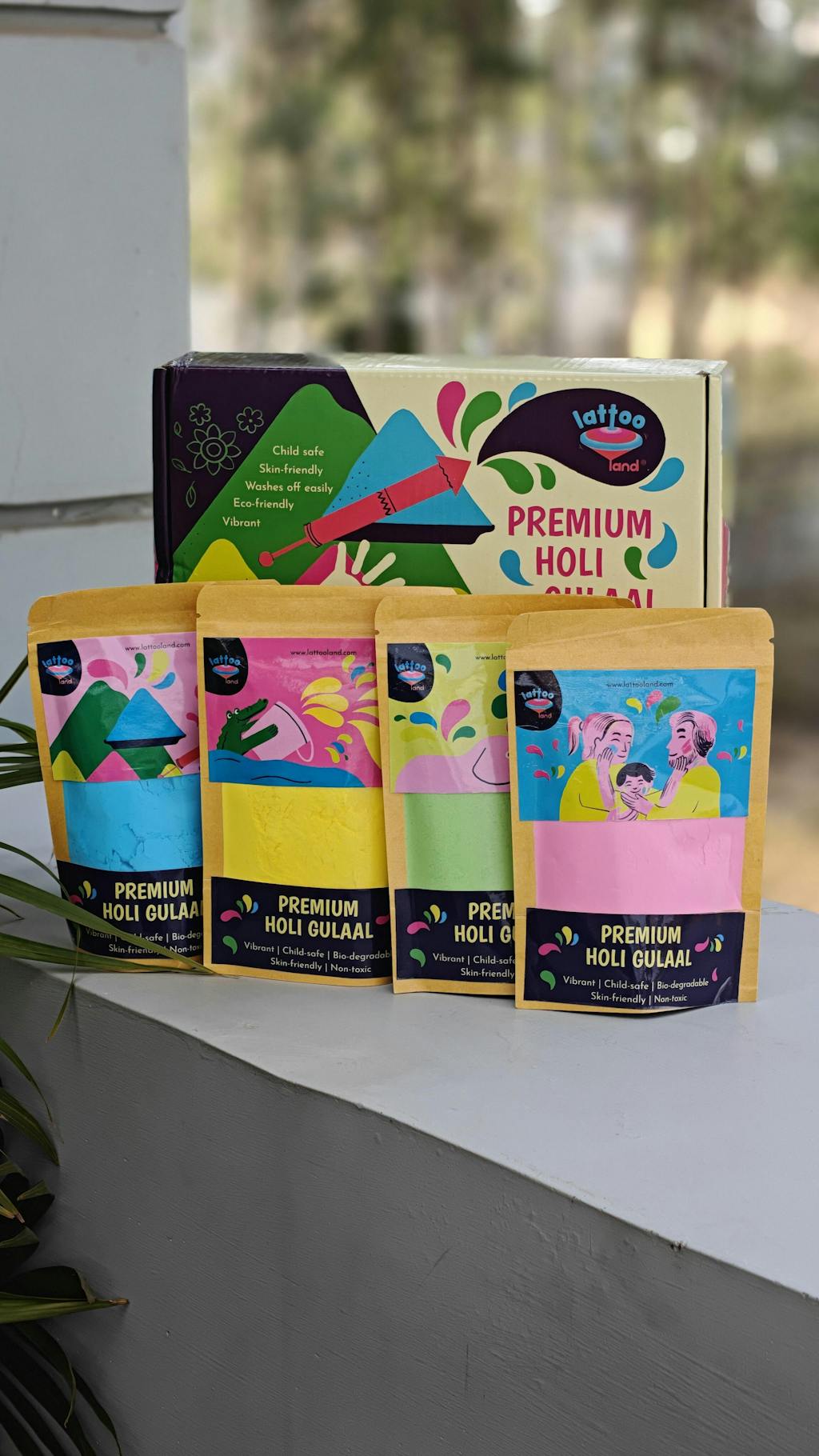 Lattoo Holi colours are made from food grade ingredients, organic, extremely soft, lab-tested toxin free and completely environment friendly. It comes in four different colours enabling your kids to have loads of fun with friends and family!