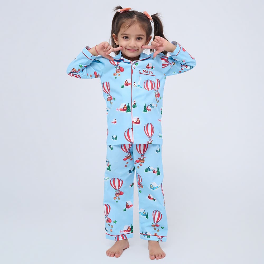 Santa’s traded his sleigh for a hot air balloon! Santa’s Balloon Ride Pajama Set is all about joy, comfort, and a sprinkle of sky-high holiday fun.