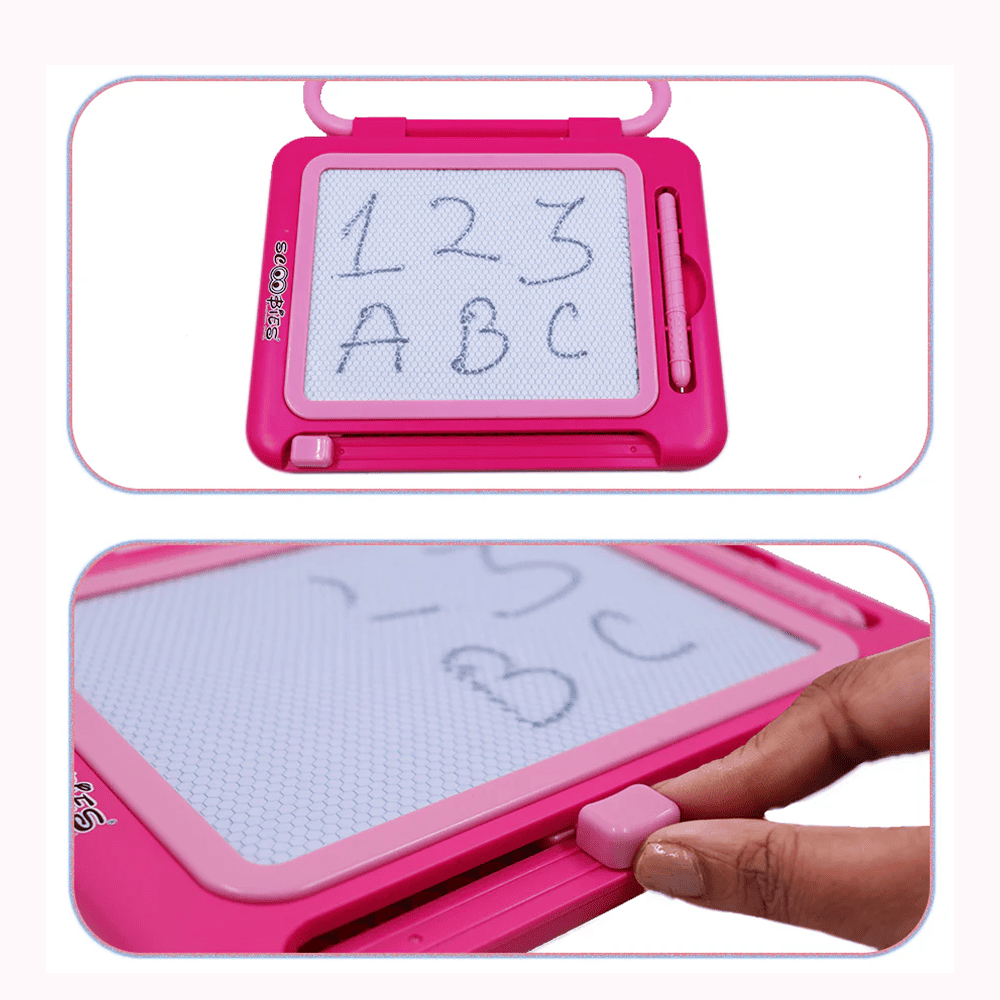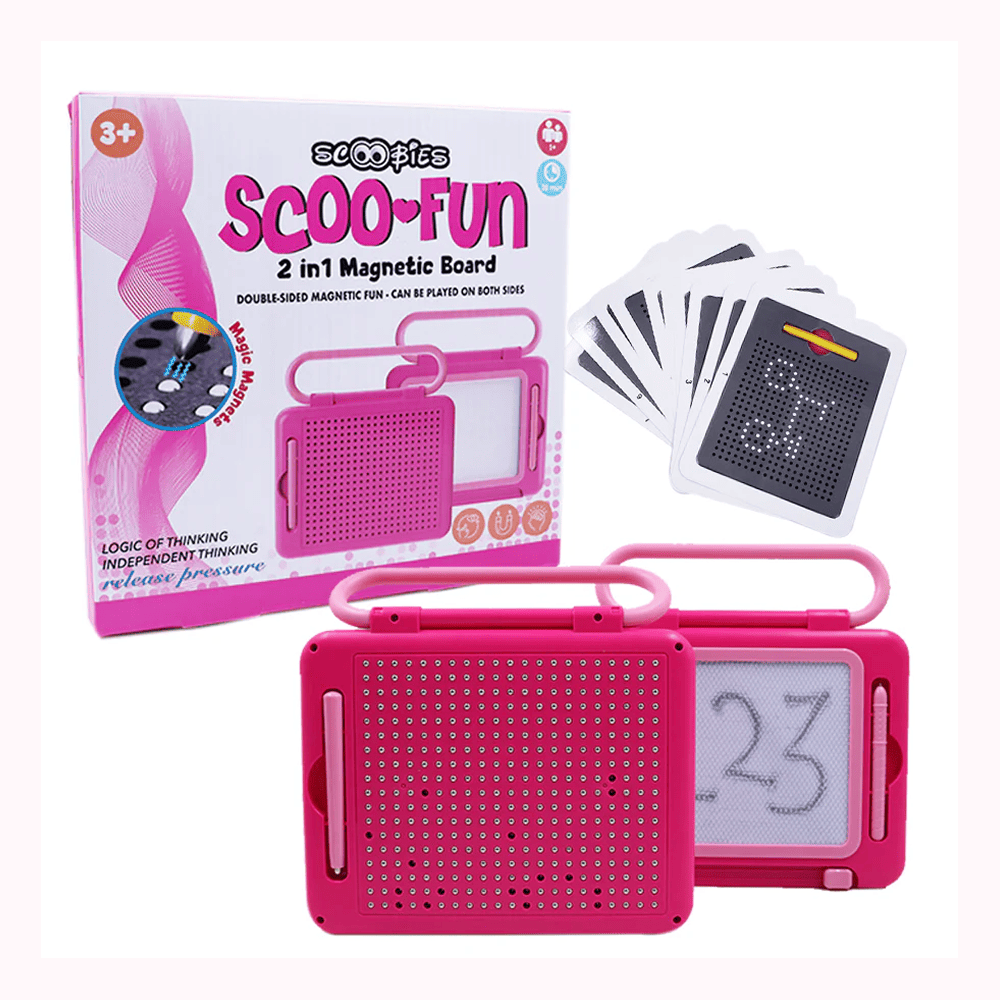 Make learning magical with this Dual-Sided Pink Magnetic Board! Featuring a smooth writing surface on one side and a magnetic play surface on the other, it encourages kids to practice letters, numbers, and creative doodles with ease. Reusable and mess-free, it supports early learning, logical thinking, and imaginative play. Safe, sturdy, and portable—it's ideal for home, school, travel, and gifting.