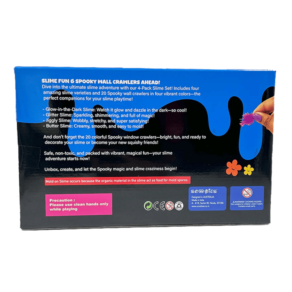 Unleash gooey, spooky fun with this Slime & Spooky Wall Crawlers Kit! Featuring four exciting slime types—Glow-in-the-Dark, Glitter, Jiggly, and Butter Slime—kids can mix, stretch, and squish to explore different textures. The fun gets creepier with 20 colorful wall crawlers that climb and tumble down walls for endless laughter. Made with non-toxic, safe materials, this kit is perfect for creative, sensory play at home, parties, or travel. A thrilling gift for kids who love slime and surprises!
