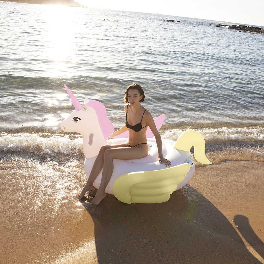 Summer is more fun with Sunny Life. Climb aboard the Luxe Ride-On Unicorn pastel Float and make this sunny season one to remember. Capable of holding a weight up to 100kg this ride-on is durable and steady. It also includes safety labels a sturdy tow point to secure float when not in use. Get comfortable on the Luxe Ride-On Float with recessed seating for lounging and handles for stability. Perfect for pool parties and backyard barbecues, the Unicorn Luxe Ride-On will be sure to turn heads and raise your Instagram pics to the influencer level.